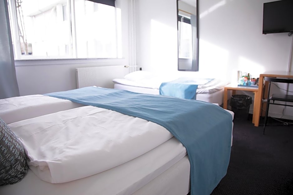 This room includes: • Own shower and toilet • Hair dryer • Free coffee, the and cocoa in the room • Mini-bar • TV and free Wifi • Bed: 2 pcs. 90x200cm